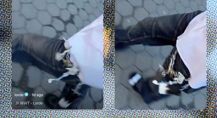 Nice right? Synthetics can elicit some great sounds. I have some noisy hiking pants — which, given contextualisation, sound far more annoying when not on a trail. And then there are materials like corduroy (a good wale goes vvvrrrttt) and creaky leather jackets. If you’re particularly tuned in, you may be able to recognise someone you know well by the sound of their outfit. Like a cat with a bell, I can locate my husband by his jangling wallet chain. (Lorde wears a tchotchke-laden one in her latest album teaser, and no doubt fans will analyse the semiotics of each adornment as fervently as they did with her book stack and use of Unicode characters, while the rest of us wait to be blessed with the long-rumoured new album).
